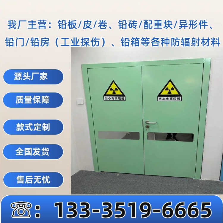 医用防辐射铅门主要由铅板、门框、驱动系统和控制系统构成。铅,因原子序数高、密度大,具有极强的防辐射能力,能有效阻挡 X 射线和 γ 射线等。铅板通常镶嵌在门板内部,与高强度的金属框架紧密结合,确保防护效果。其驱动系统包括电动和手动两种,电动铅门采用电机驱动,可通过按钮、感应装置等实现自动开关,操作便捷,适用于频繁使用的场所;手动铅门则依靠人力推拉,适合使用频率较低的区域。控制系统则具备安全保护功能,如遇障碍物自动停止关闭,避免夹伤人员。